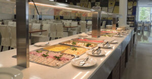 Питание в пансионате «Лесные дали» организовано по следующему расписанию: завтрак с 09:00 до 11:00, обед с 13:30 до 15:00, ужин с 18:20 до 19:45